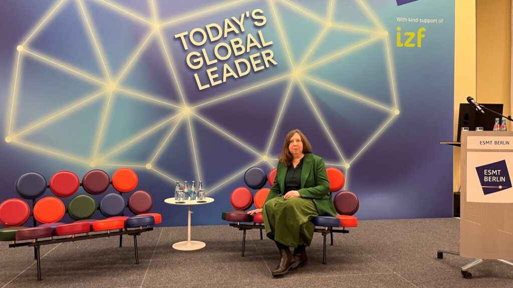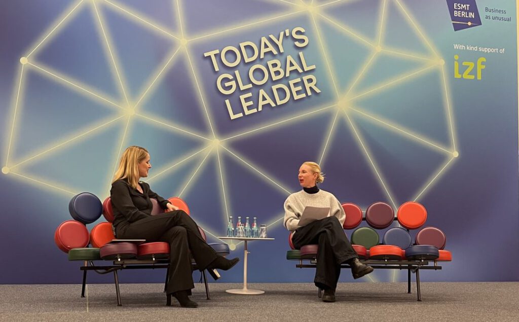Vor vielen, vielen Jahren war ich mal auf dem Vitra Campus in Weil am Rhein. Ein tolles Erlebnis. Und als ich hörte, dass wir ein Gespräch mit Nora Fehlbaum von Vitra in unserer Reihe Today’s Global Leader planen, war ich begeistert! Und den Termin konnte ich mit sogar einplanen und so bin ich extra nach Berlin gereist. In dem Gemeinschaftsprojekt der ESMT Berlin mit der Initiative Zukunftsfähige Führung (IZF) e.V. sind immer wieder sehr spannende Gäste eingeladen. Nora Fehlbaum hat zwölf Jahre lang das Familienunternehmen Vitra geleitet. An diesem Abend in Berlin plaudert sie über Design, Klassiker, Leadership und vieles mehr. Es war super spannend! Das Interview gibt es in Kürze auch online zu sehen. Super coole Marketingaktion: Sie hat für die Veranstaltung Möbel von Vitra bringen lassen. Und so durfte ich in der ersten Reihe auf einem Alcove Sofa in der Farbe Rot dem Gespräch lauschen. Vorher noch auf der Bühne mal auf einen der klassischen Marshmallow Sofas Platz genommen. Mega cool!