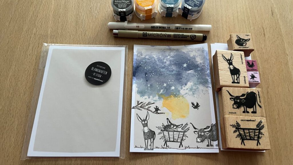 Bis Heilig Abend habe ich dann mit den Stempeln aus dem Ministempel-Adventskalender jeden Tag noch eine Weihnachtskarte gestempelt (und eine Neujahrskarte :-)). Viele haben sich gefreut, so eine einzigartige Karte zu bekommen!