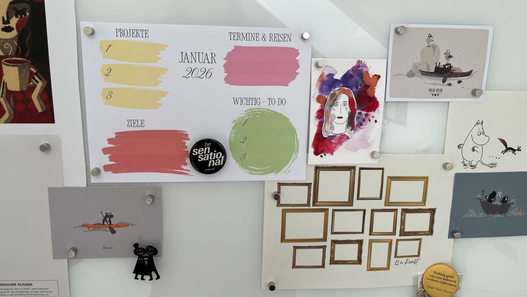 Und neben ein paar anderen Vorsätzen und Zielen nehme ich mir immer gerne eine besondere Challenge vor. Für 2026: Kunst! Ich mag Museen und Kunstausstellungen, gehe aber viel zu selten. Für dieses Jahr möchte ich zwölf Kunstausstellungen besuchen, am liebsten jeden Monat eine. Für die Challenge sind schon mal zwölfleere Bilderrahmen auf meinem Mood-Board, die jetzt mit Leben gefüllt werden möchten.