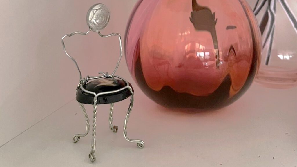 Ich bin jetzt nicht im Retro-Fieber, aber ich habe tatsächlich aus den alten Zeiten noch meinen Plattenspieler. Mein lieber Mann hat den mit unserer Musikanlage zum Laufen gebracht und wir haben mal nostalgisch der Musik einer Schallplatte gelauscht. Nebenbei ein bisschen gebastelt. Ich wollte schon lange mal so einen Stuhl aus einem alten Sektverschluss ausprobieren. Den Champagnerverschluss von Silvestern hatte ich aufgehoben und jetzt mal in einen Stuhl verwandelt. Ganz nett, die Lehne ist etwas krumm und schief geworden, aber heh, das war ja nur der erste Versuch 😊.
