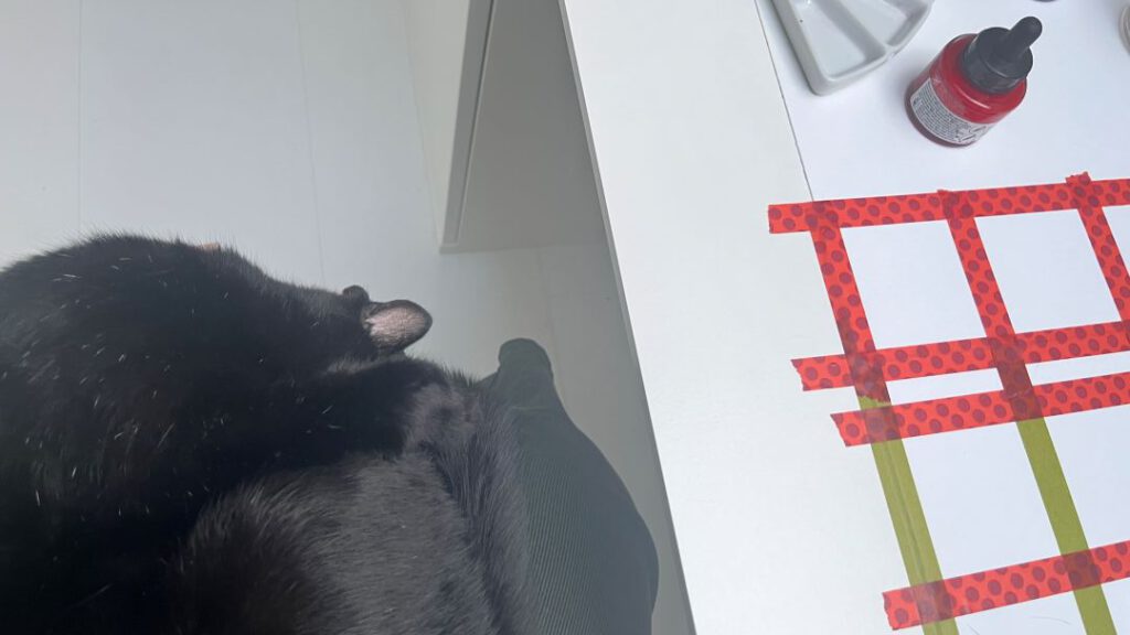 Donnerstag habe ich mir etwas Zeit zum Malen gegönnt. Nix besonders, aber schon mal farbenfrohe Tannenbäume (die brauche ich fürs nächste Schaufenster). Außerdem habe ich schon mal mit ein paar Geschenkanhänger gestartet … Bevor ich loslegen konnte, kam aber einer meiner Katern zur Unterstützung. Die Geschenkanhänger sind noch nicht fertig, mehr dann nächste Woche!