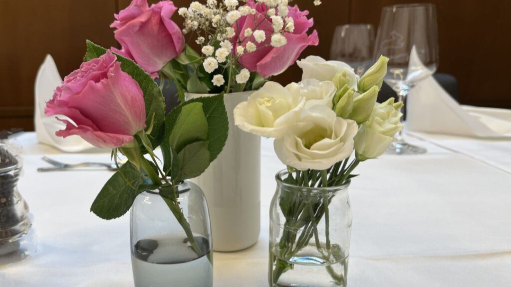 Ein besonderer Geburtstag: Meine Schwiegermutter ist letzte Woche 90 geworden und am Sonntag gab es ein großes Fest. Ehrensache, dass ich mich um die Blumendeko gekümmert habe. Viele kleine Minivasen (und ja, die meisten davon gibt es bei mir im Shop 😊) verteilt über den Tisch. Rosen, Anemonen, Nelken und mehr brachten fröhliche Farbtupfer auf den Tisch.