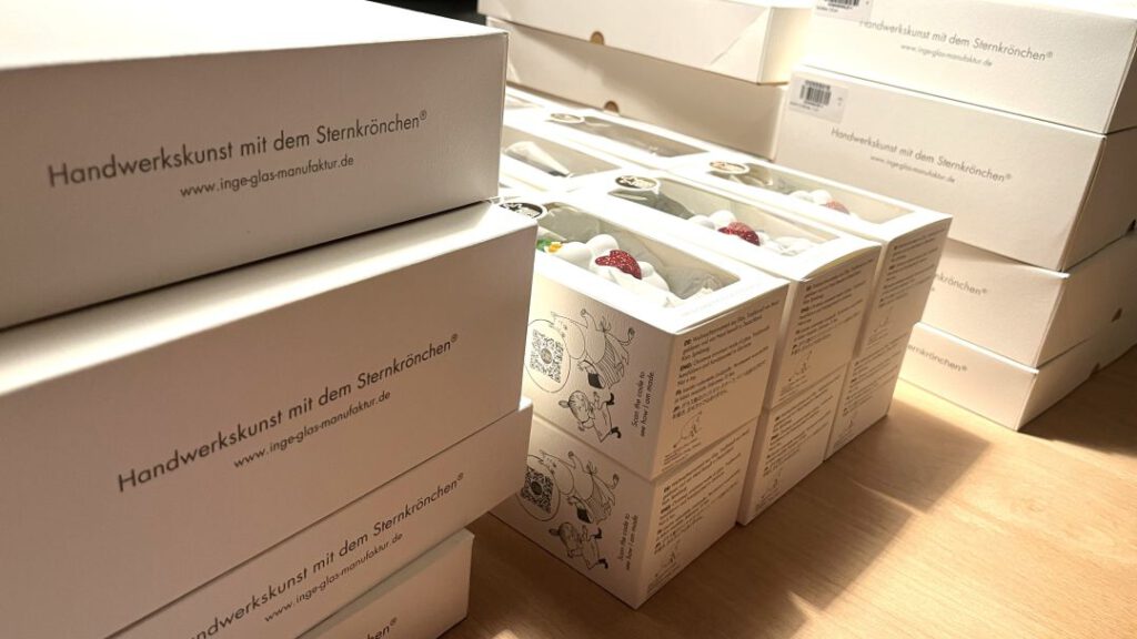 Diese Woche sind auch schon die ersten zwei Messe-Bestellungen eingetrudelt. Weihnachten kann kommen, der neue Weihnachtsschmuck ist schon da. Es wird noch ein bisschen dauern, bis ich den online in den Shop nehme, aber hier schon mal ein kleiner Vorgeschmack: