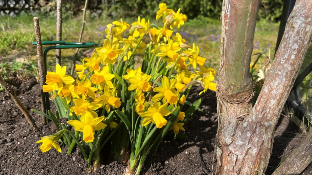 Ich bin spät dran, aber ich habe trotzdem noch ein paar Tomaten ausgesät. Ich hoffe, die werden noch etwas. Dann schon mal draußen im Garten ein Beet etwas hergerichtet und Narzissen, die ich drinnen zur Deko hatte, dort eingepflanzt. So schön, wenn es so herrlich gelb leuchtet im Garten!