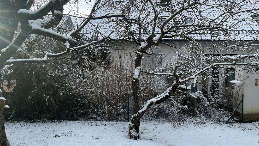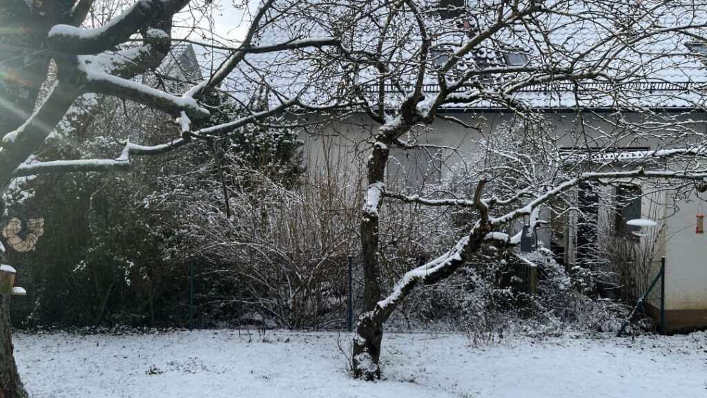 Sonntagabend fing es an zu schneien. Auf der Rückfahrt ging es im Dunkeln durch ein verschneites Winter Wonderland. Am Morgen war nicht mehr so viel Schnee und schnell war der Zauber auch vorbei und beim Spazieren am Nachmittag war schon fast alles weg …