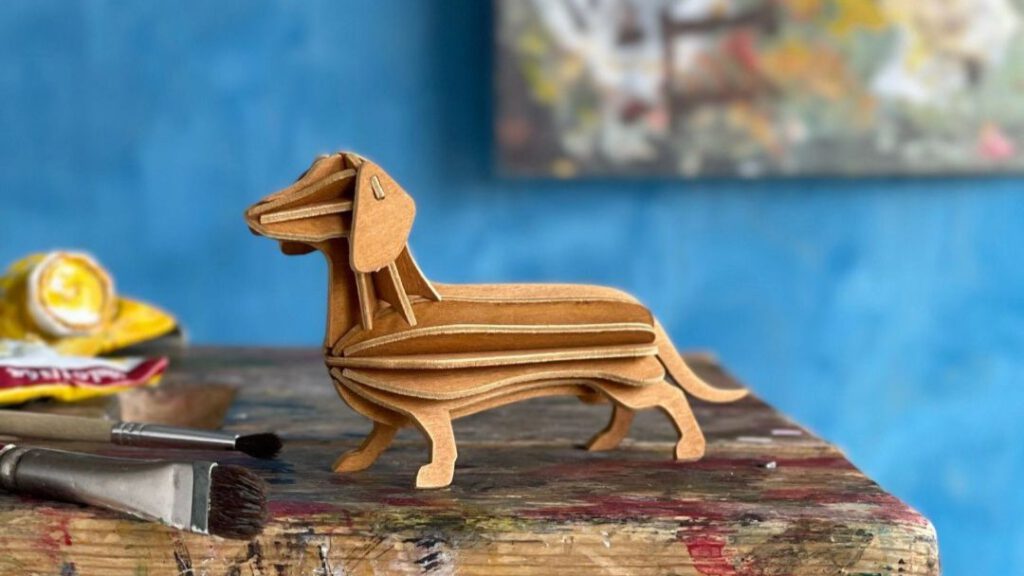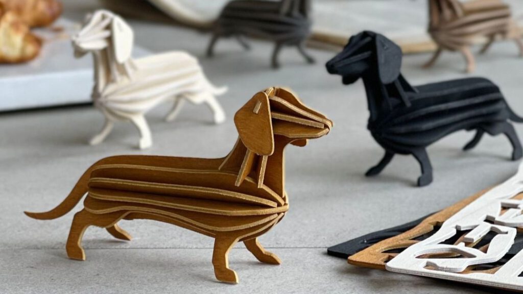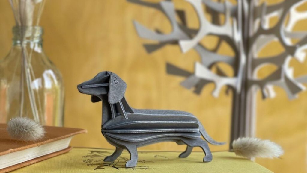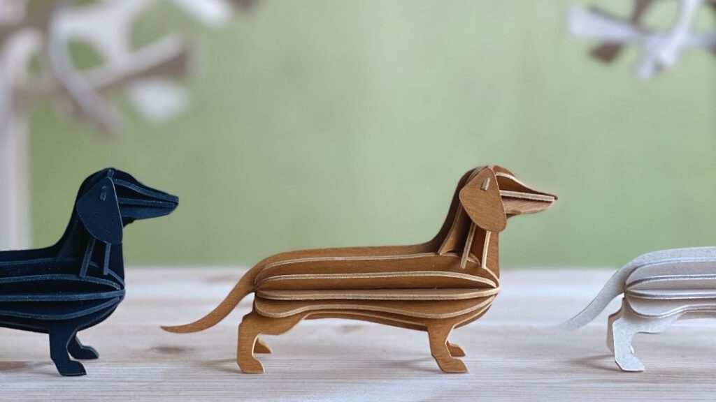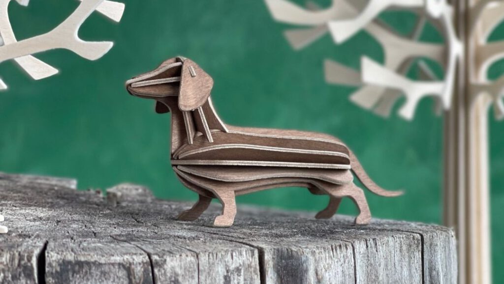 Die Dackel sind aus Birkensperrholz und werden in Finnland gefertigt. Verpackt in einer Papphülle lässt sich so ein Dackel wunderbar als Brief verschicken. Dann kann man die Karte durch einfaches Zusammenstecken in diesen niedlichen Dackel verwandeln. Ein tolles Geschenk für alle, die ein Herz für Dackel haben!