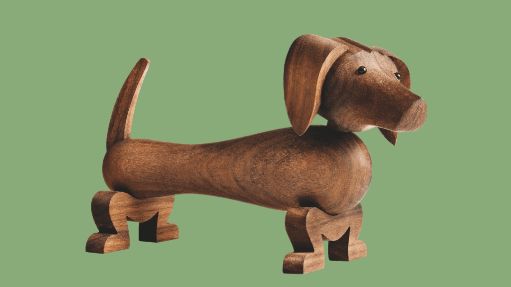 Aus feinem Walnussholz bezaubert der freche und charmante Dackel von Kay Bojesen als dekoratives Objekt Groß und Klein!